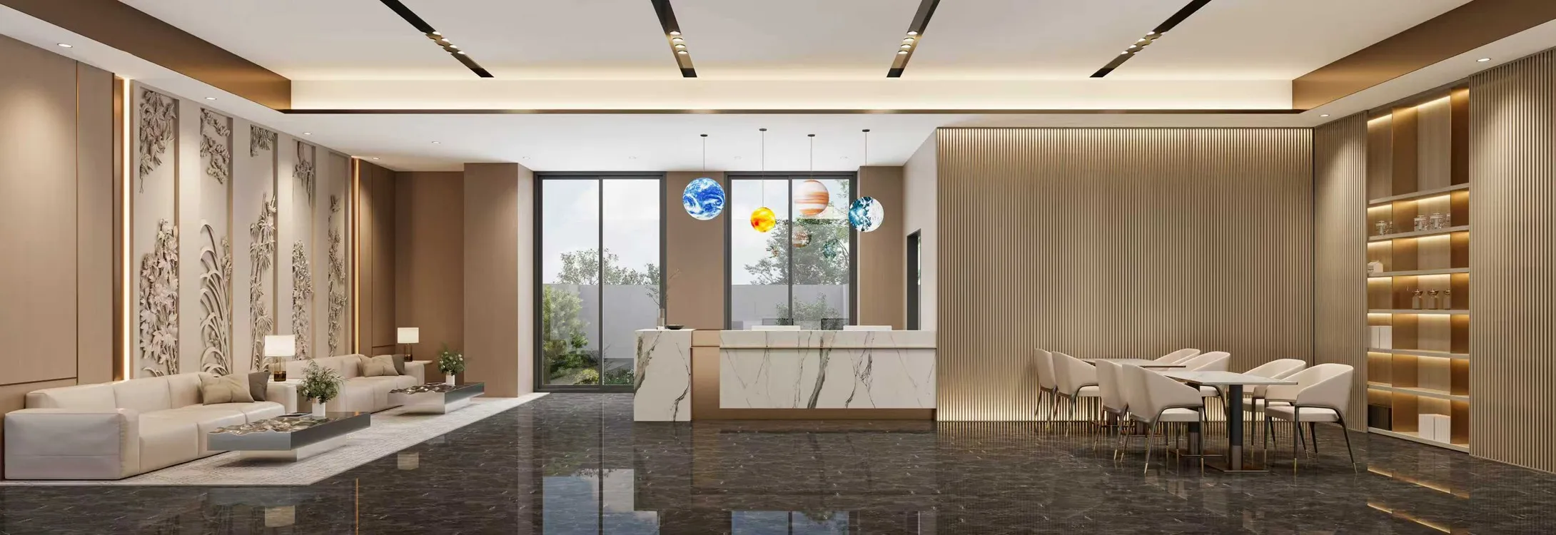 各式店家與餐飲林立,想吃一頓好料、逛逛街,開車出門就能抵達。生活採買更是一應具全,散步到位。